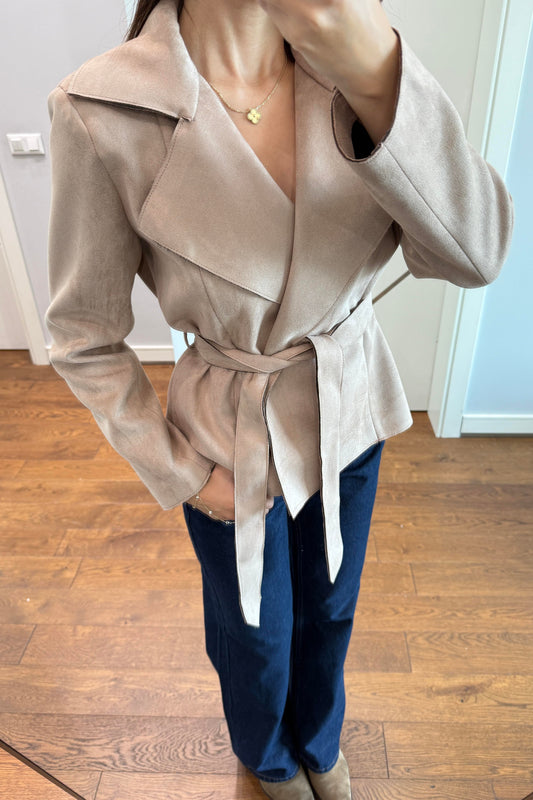 KRUVAZE KEMER DETAYLI SÜET CEKET-VİZON