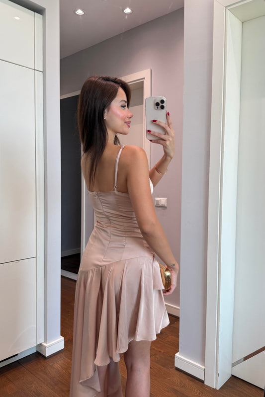 3 AL 2 ÖDEASKLI ASİMETRİK SATEN ELBİSE