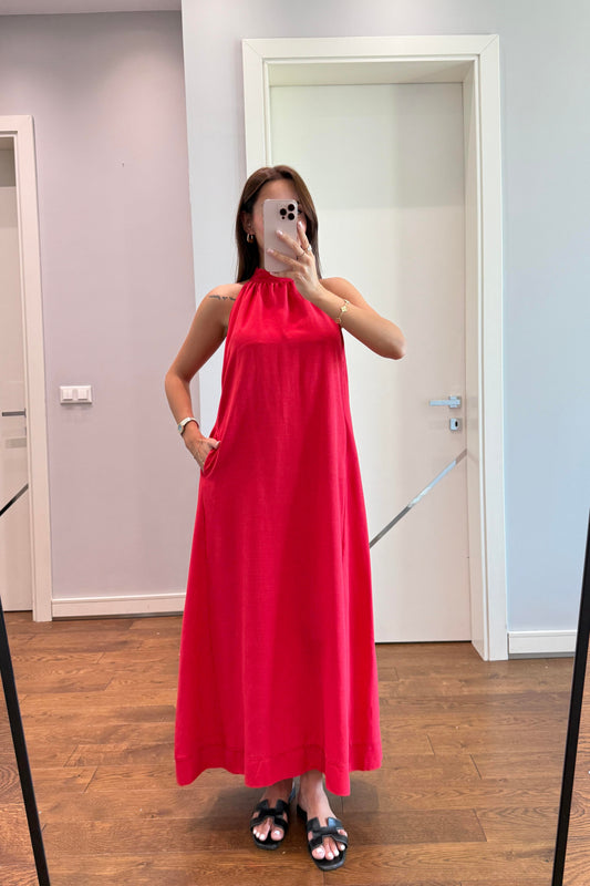 MUADİL HALTER YAKA ELBİSE-KIRMIZI