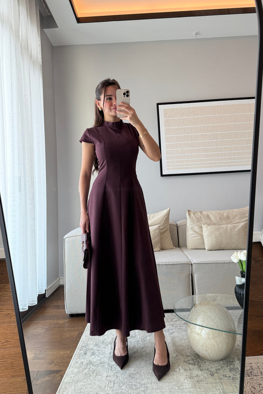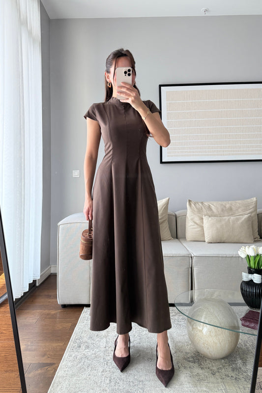 AY KOLLU KUPLU ELBİSE-ACI KAHVE
