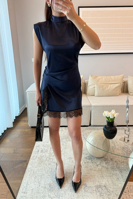 YIRTMAÇ DANTEL DETAYLI SATEN ELBİSE