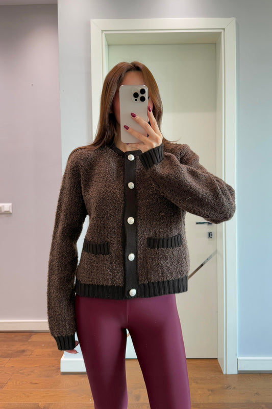 PELUS DETAYLI KAPÜŞONLU TRİKO HIRKA-ACI KAHVE