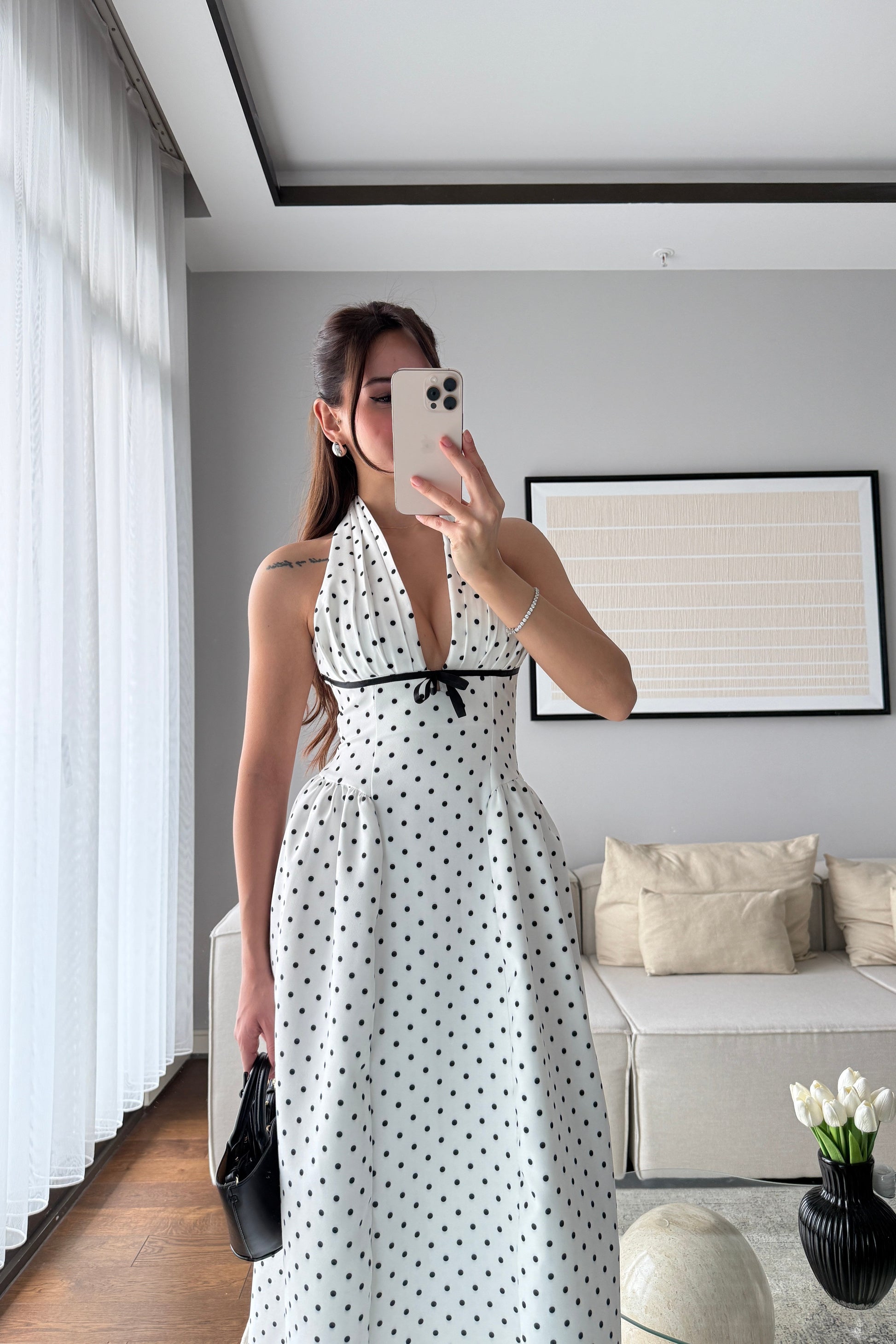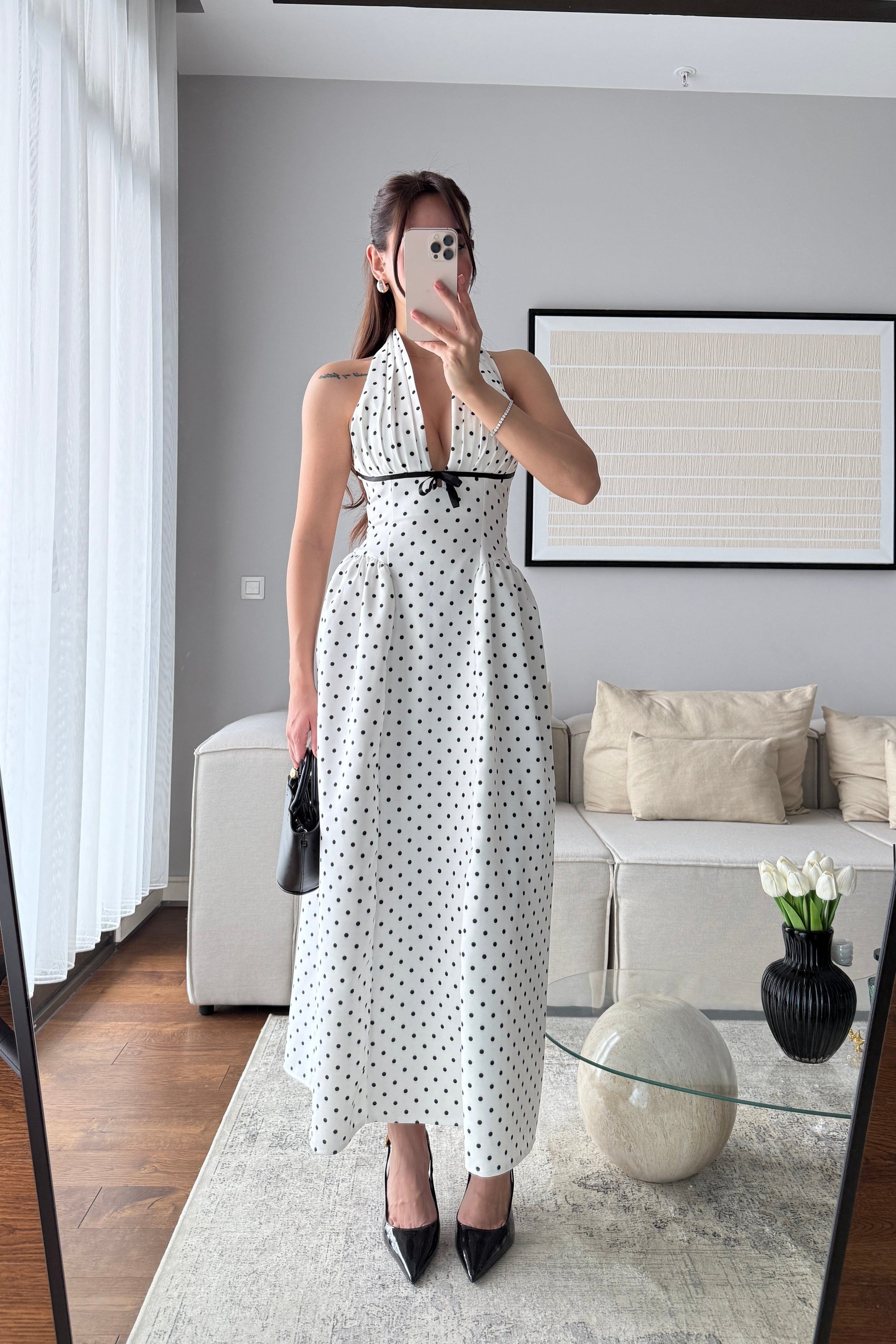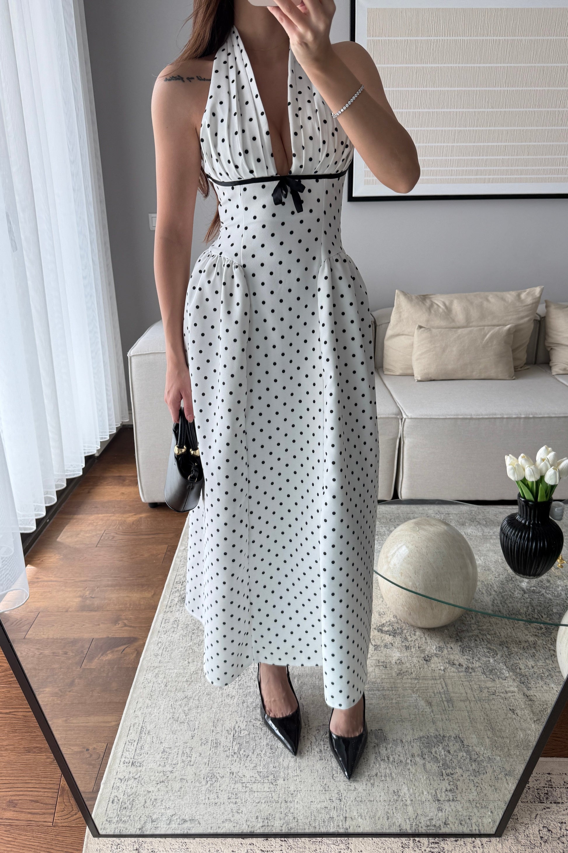 FİYONK DETAYLI PUANTİYE ELBİSE-EKRU