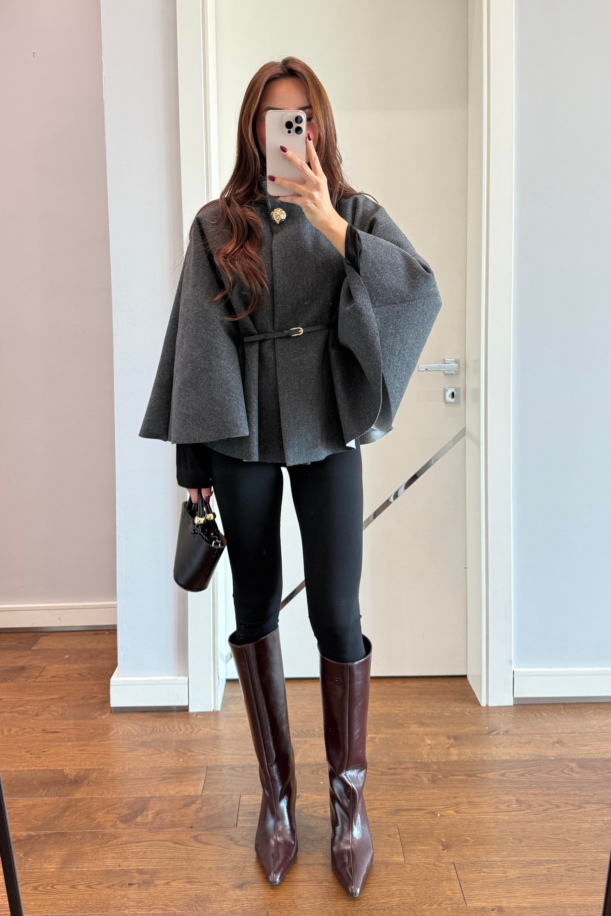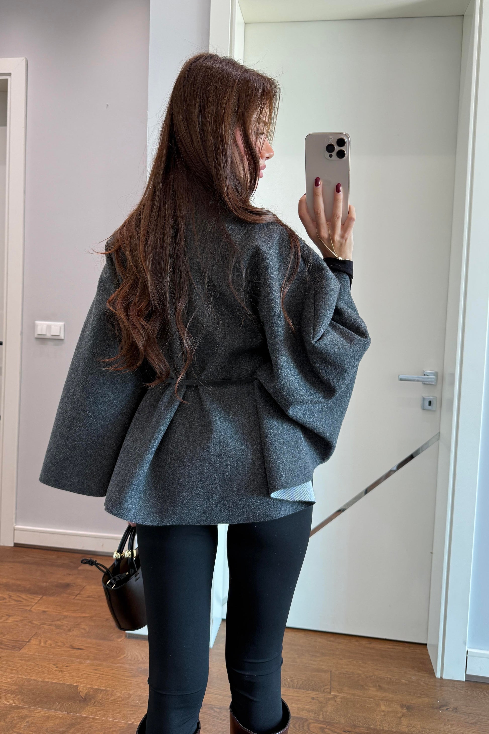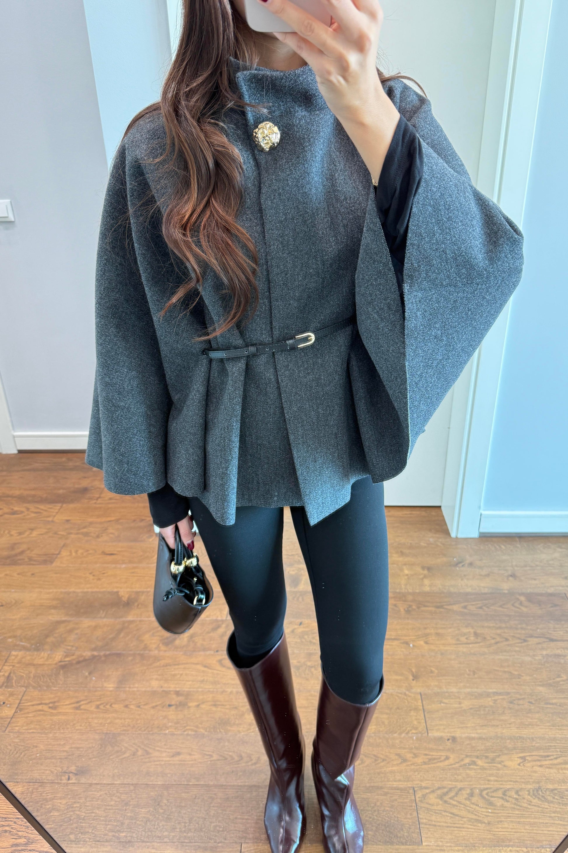 KAŞE KEMERLİ PANÇO- ANTRASİT