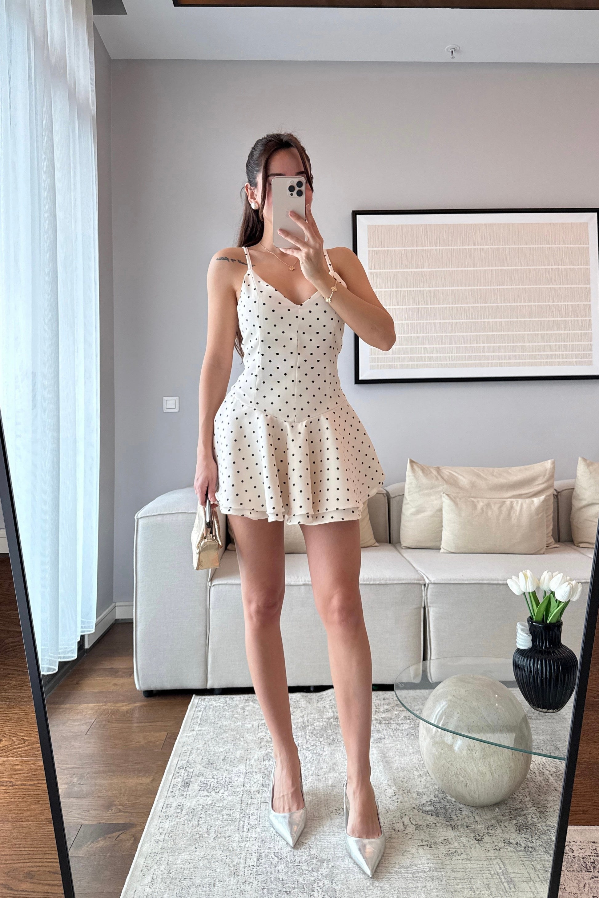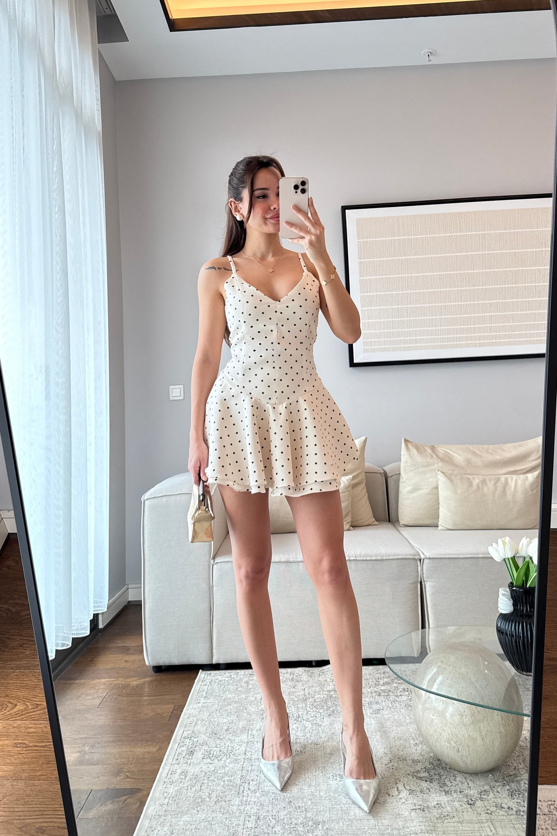 PUANTİYE DESENLİ KISA TULUM ELBİSE