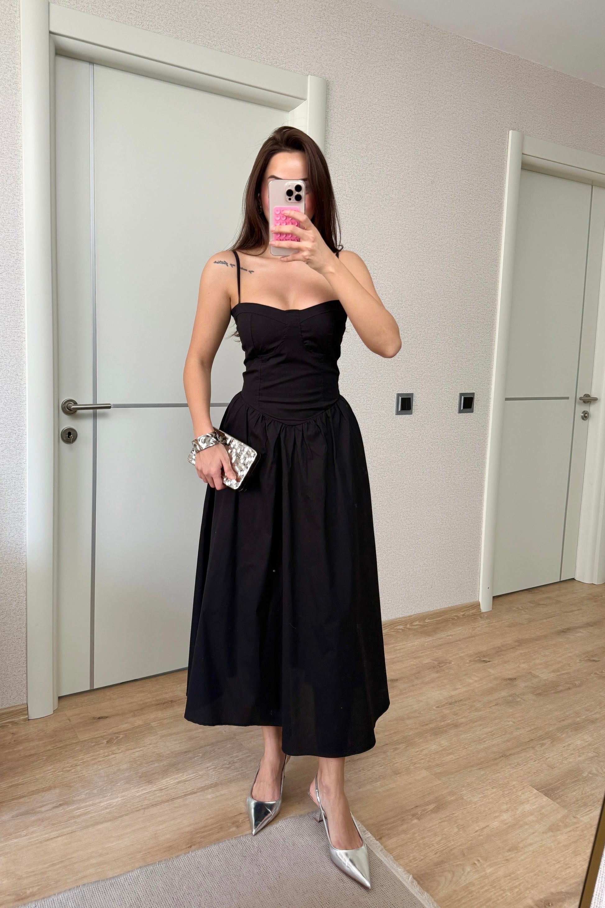 TASARIM POPLİN SİYAH ELBİSE