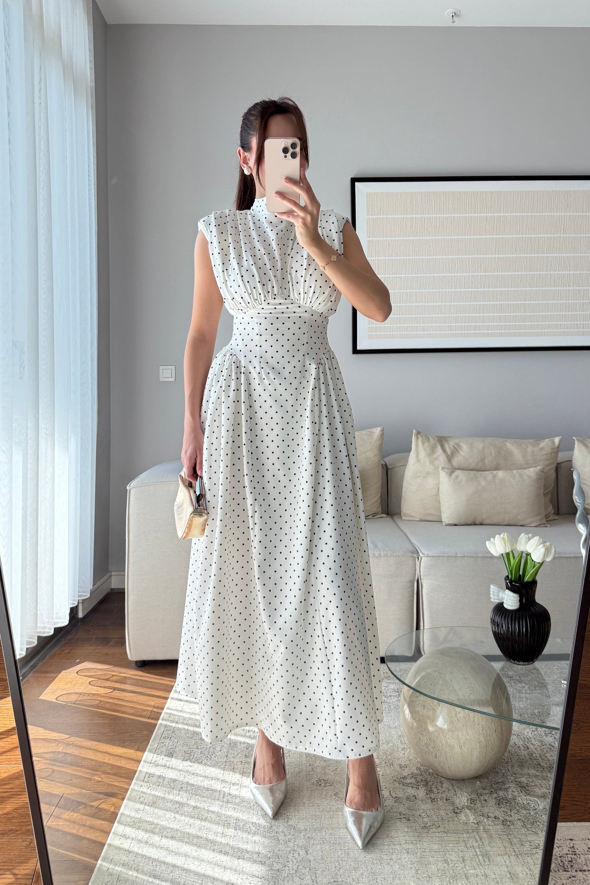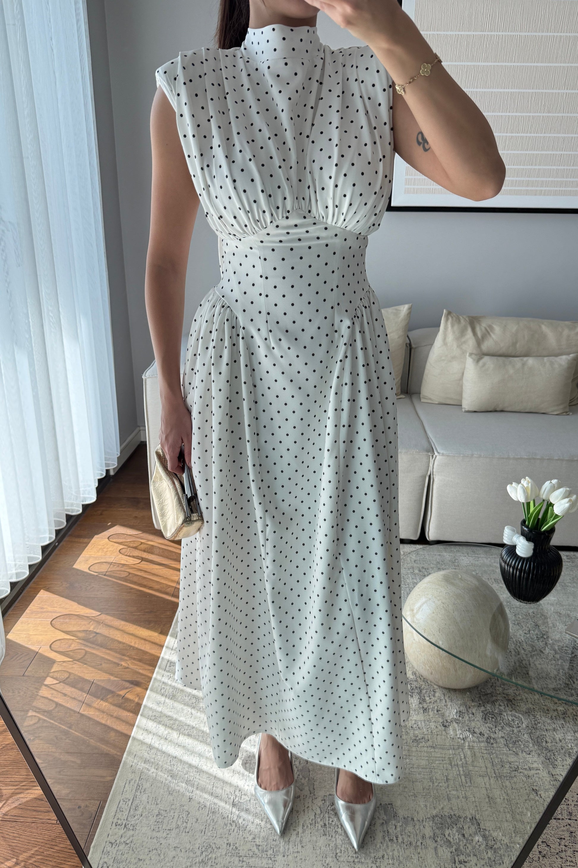 VATKALI BEL DETAYLI PUANTİYELİ ELBİSE