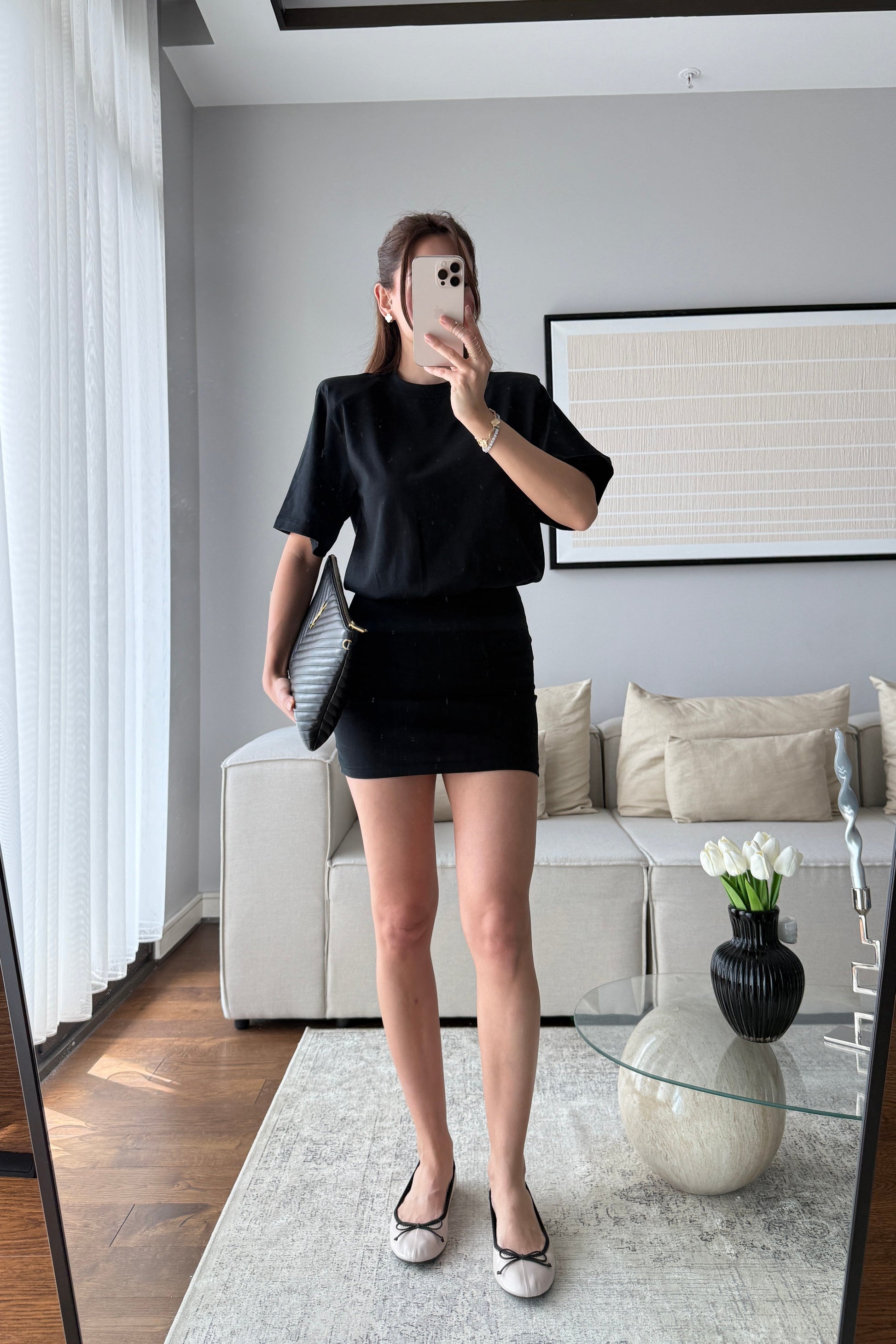 VATKALI BEL OTURTMALI MİNİ ELBİSE-SİYAH