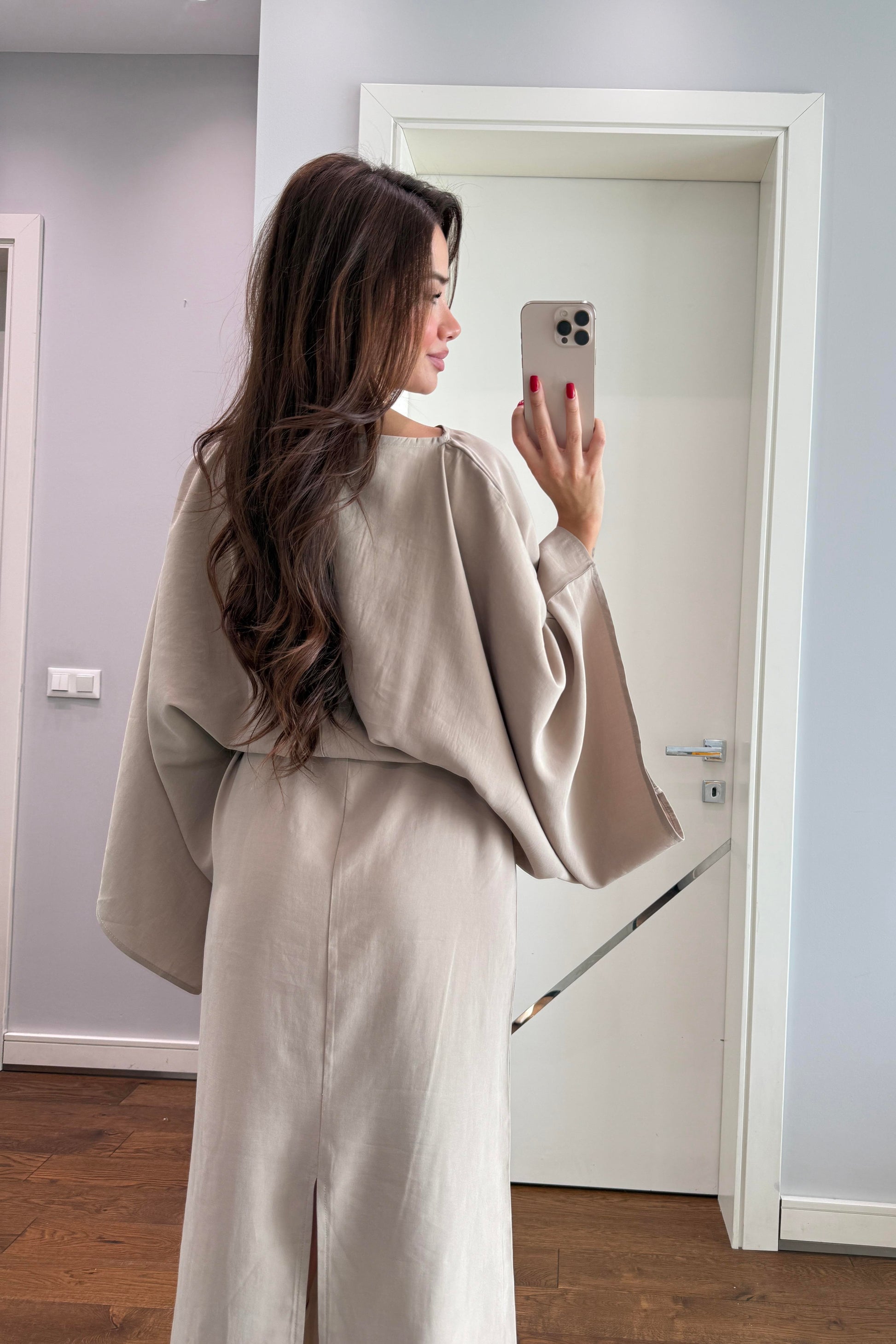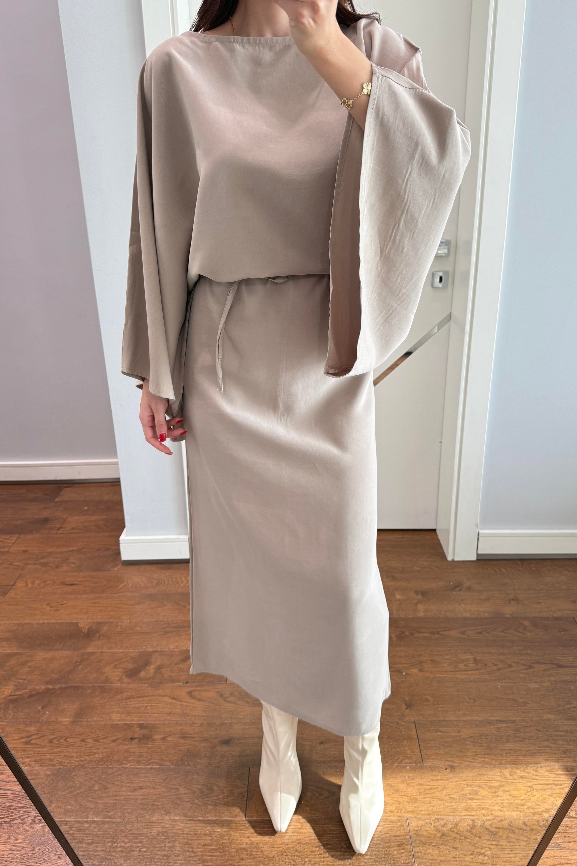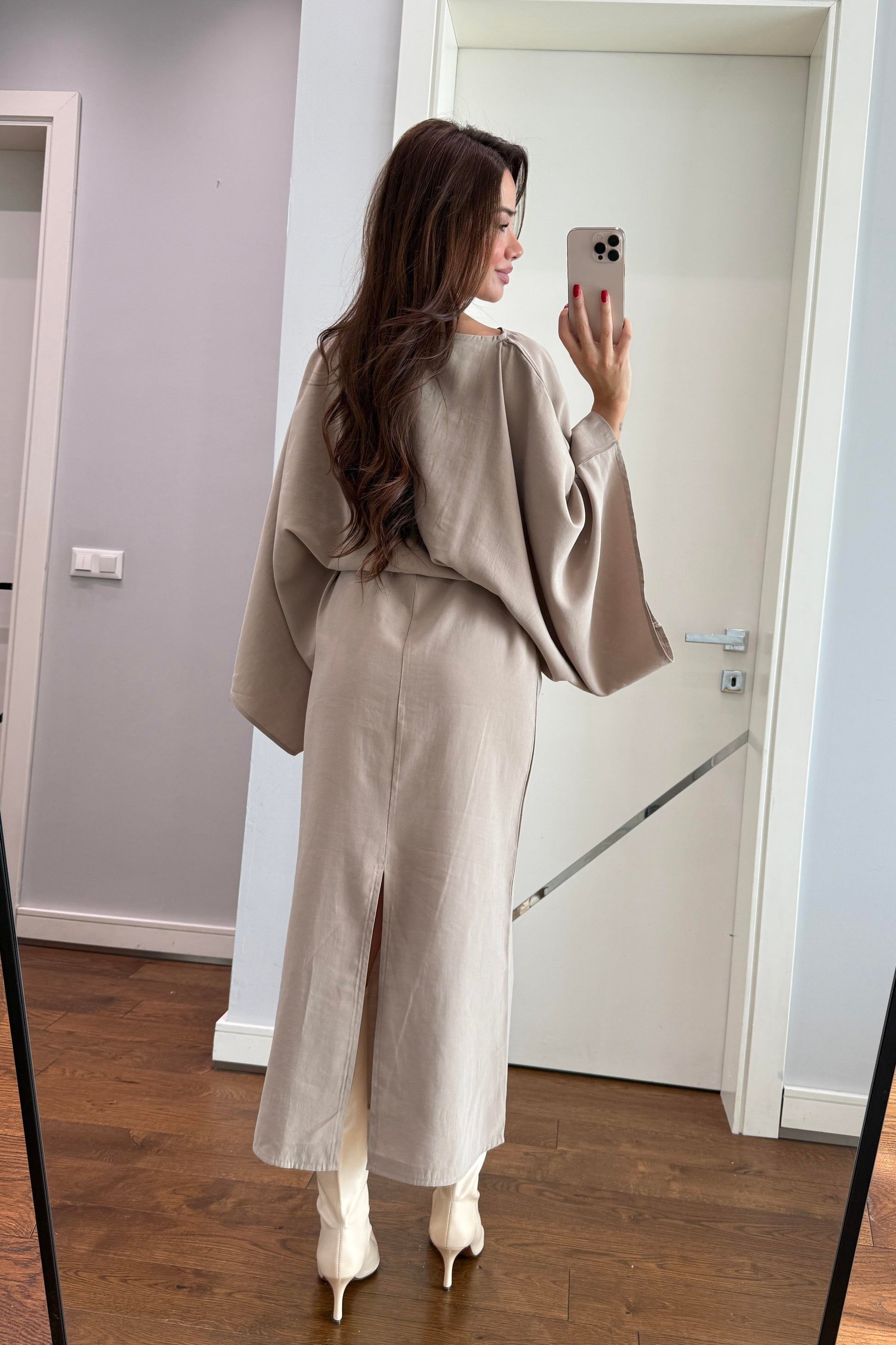 Model üzerindeki S bedendir,elbise tam kalıptır