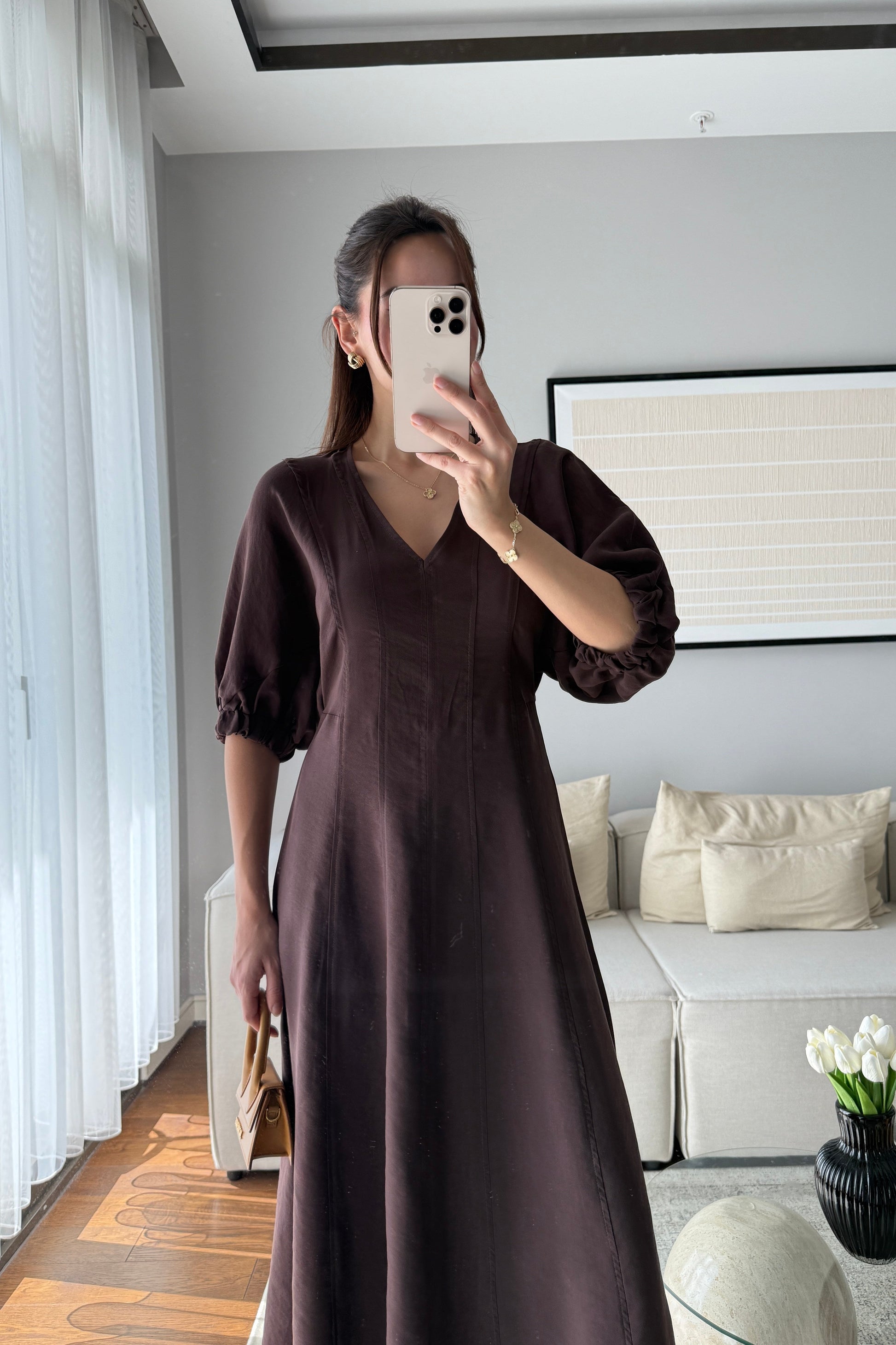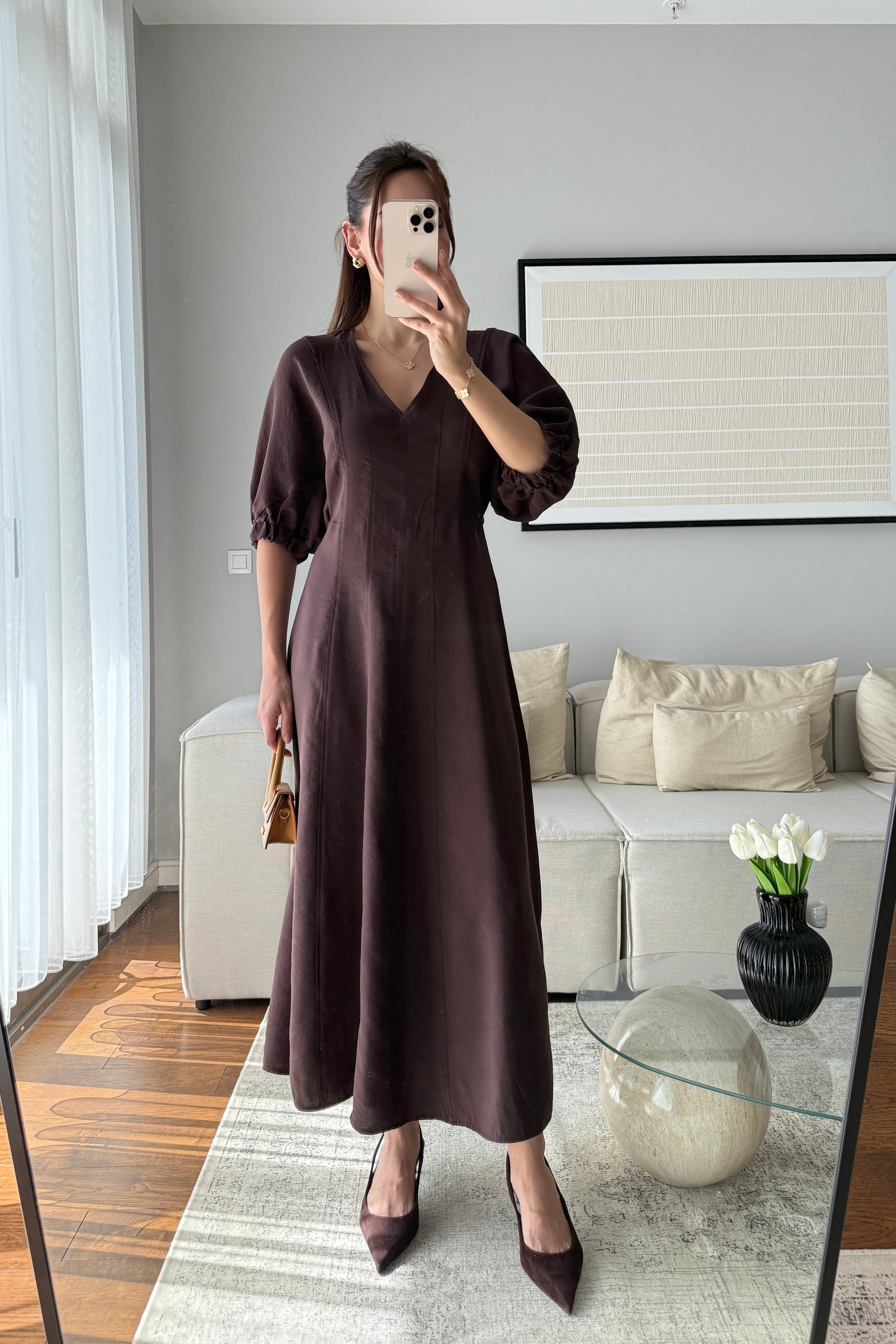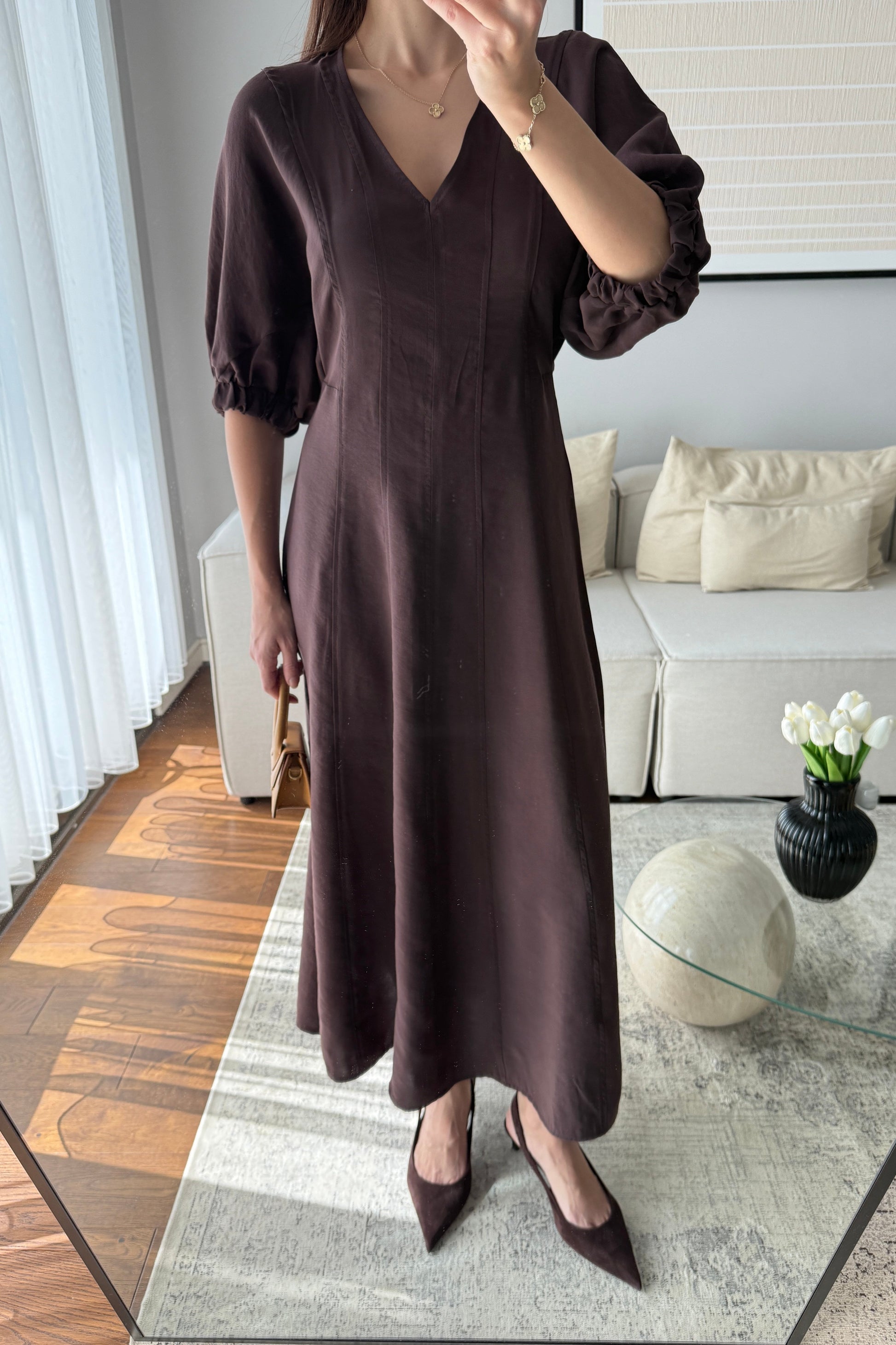 YARASA KOL MİDİ ELBİSE- KAHVE